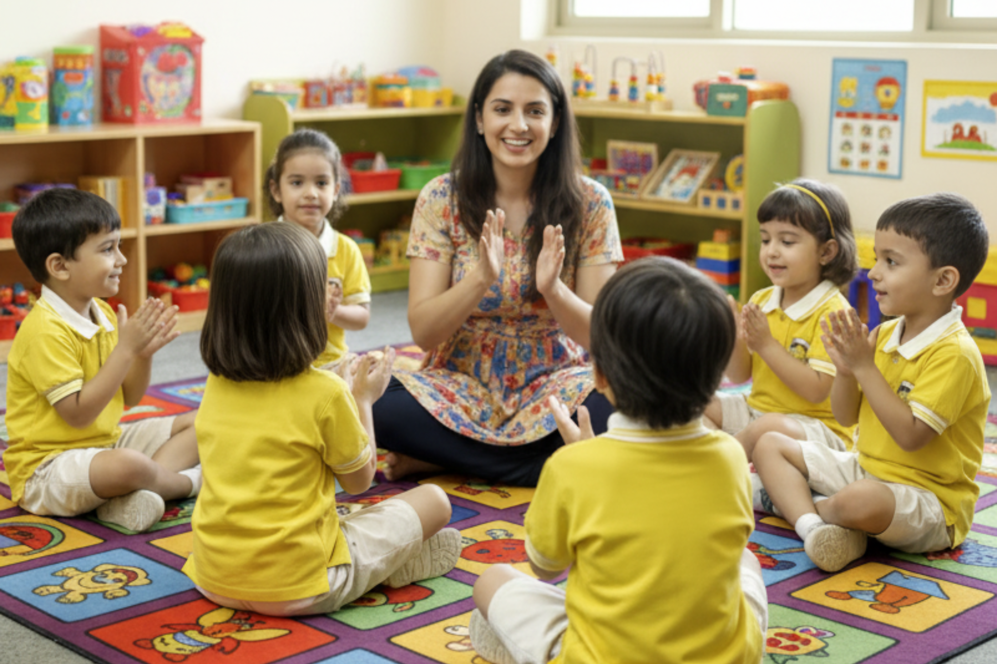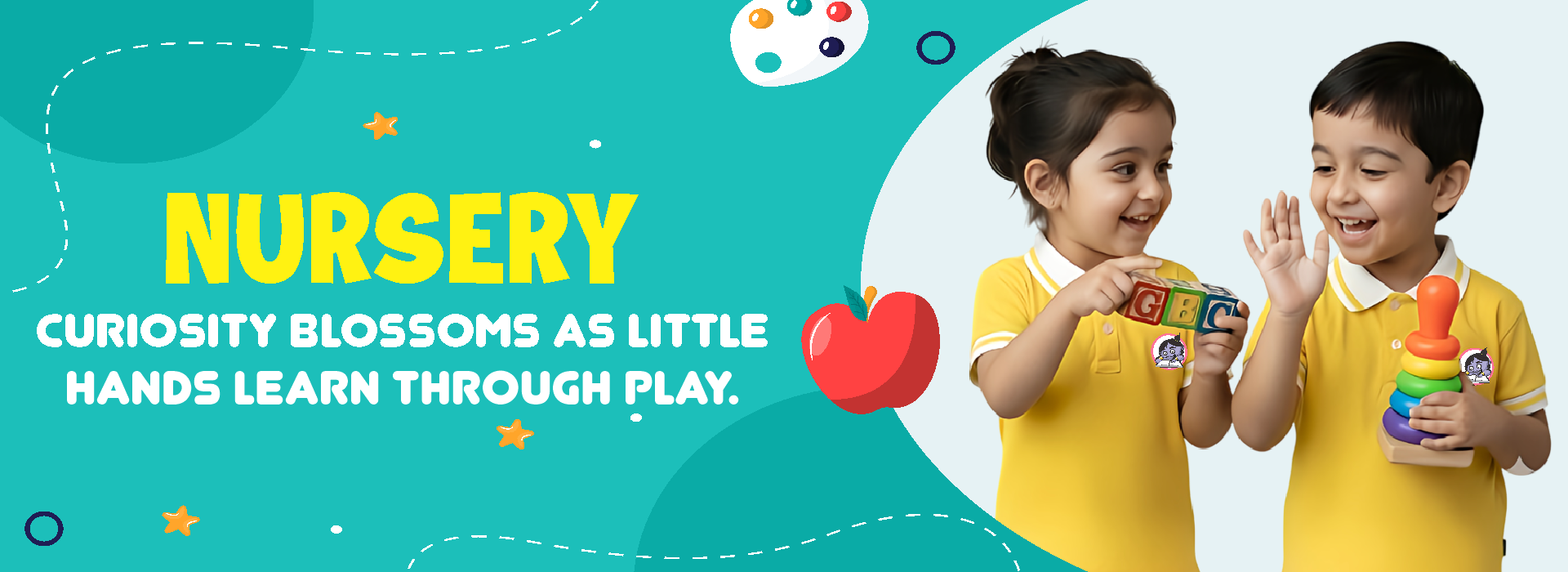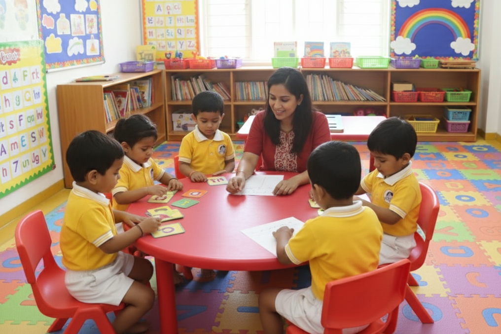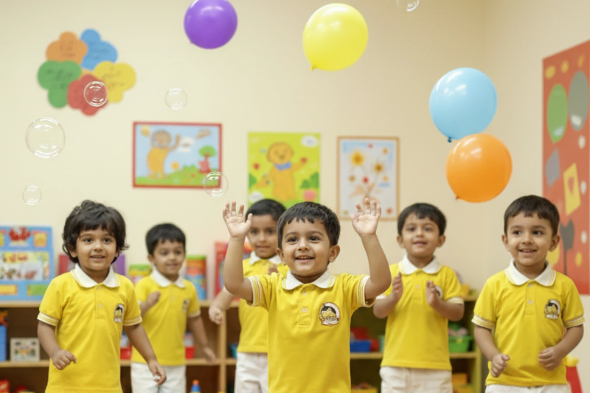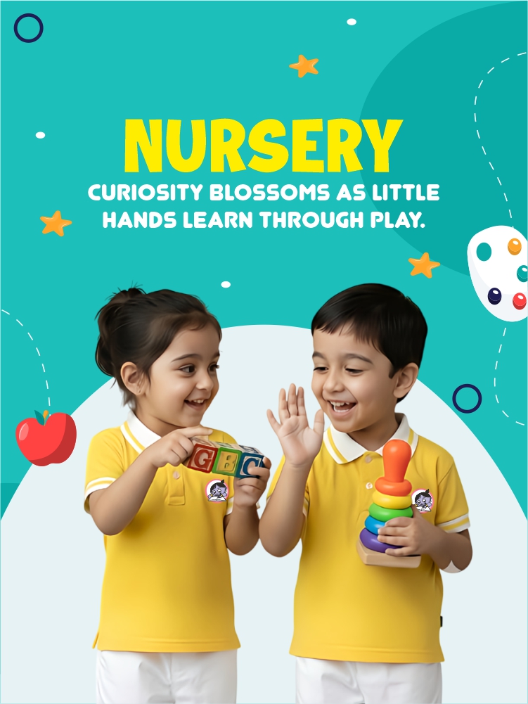 With growing curiosity and developmental readiness, children in Nursery are introduced to structured concepts through a balanced mix of academics and play. The curriculum builds early foundations in Literacy (English), Numeracy (Math), and Environmental Awareness, alongside creativity and physical activities. We emphasize holistic learning—where children are encouraged to express themselves, follow routines, and enjoy group learning. Regular participation in events like Annual Day and Sports Day fosters confidence and team spirit.